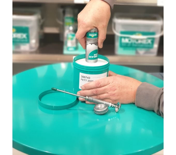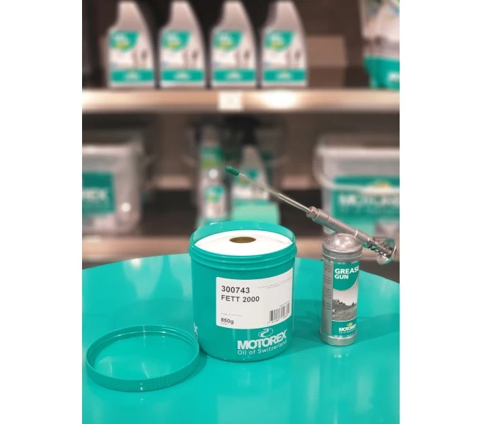 Mit der Bike Grease Gun Fettpresse von Motorex lässt sich Werkstattfett schnell, sauber und gut dosierbar auf Naben, Tretlager oder Steuersätze auftragen. Sie ist ideal für jede Werkstatt, praktisch unzerstörbar und in Kombination mit dem Motorex Bike Grease Schmiermittel in der 850 g Dose superleicht zu befüllen.